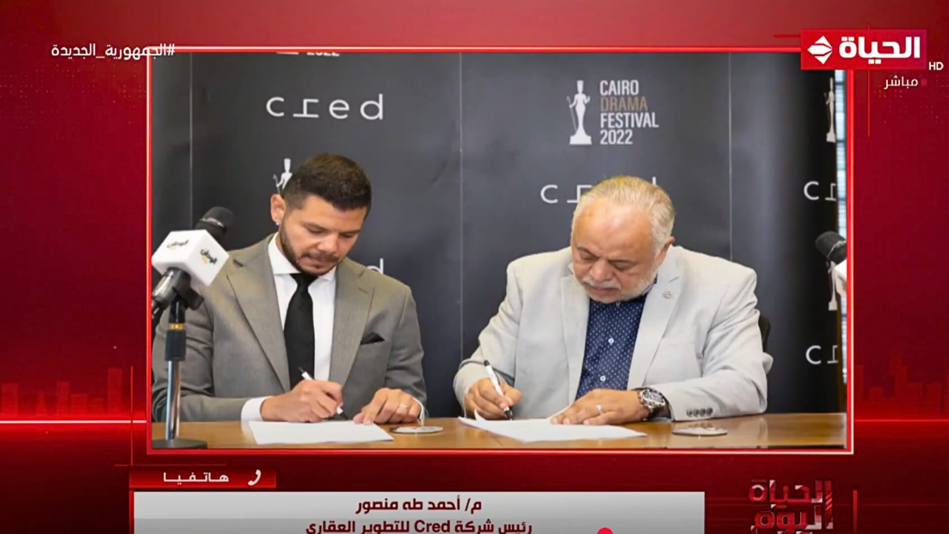 Ahmed Mansour signed with Ashraf Zaki, a sponsorship agreement for the inaugural edition of the Cairo Drama Festival, as a support & encouragement to the industry